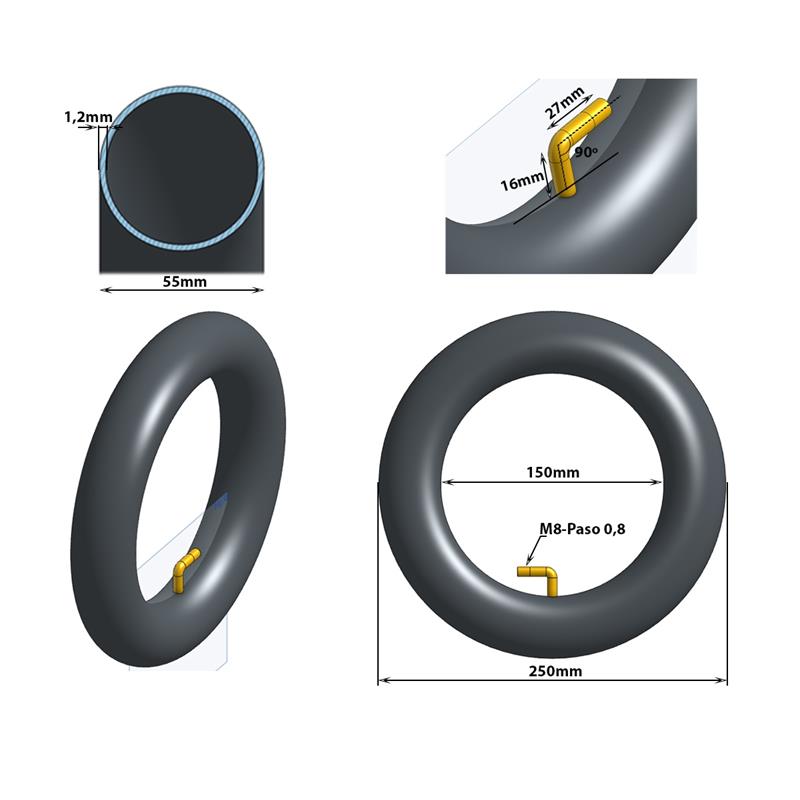 10 x 2.125 sisärengas sähköpotkulautaan 0/90 venttiili
