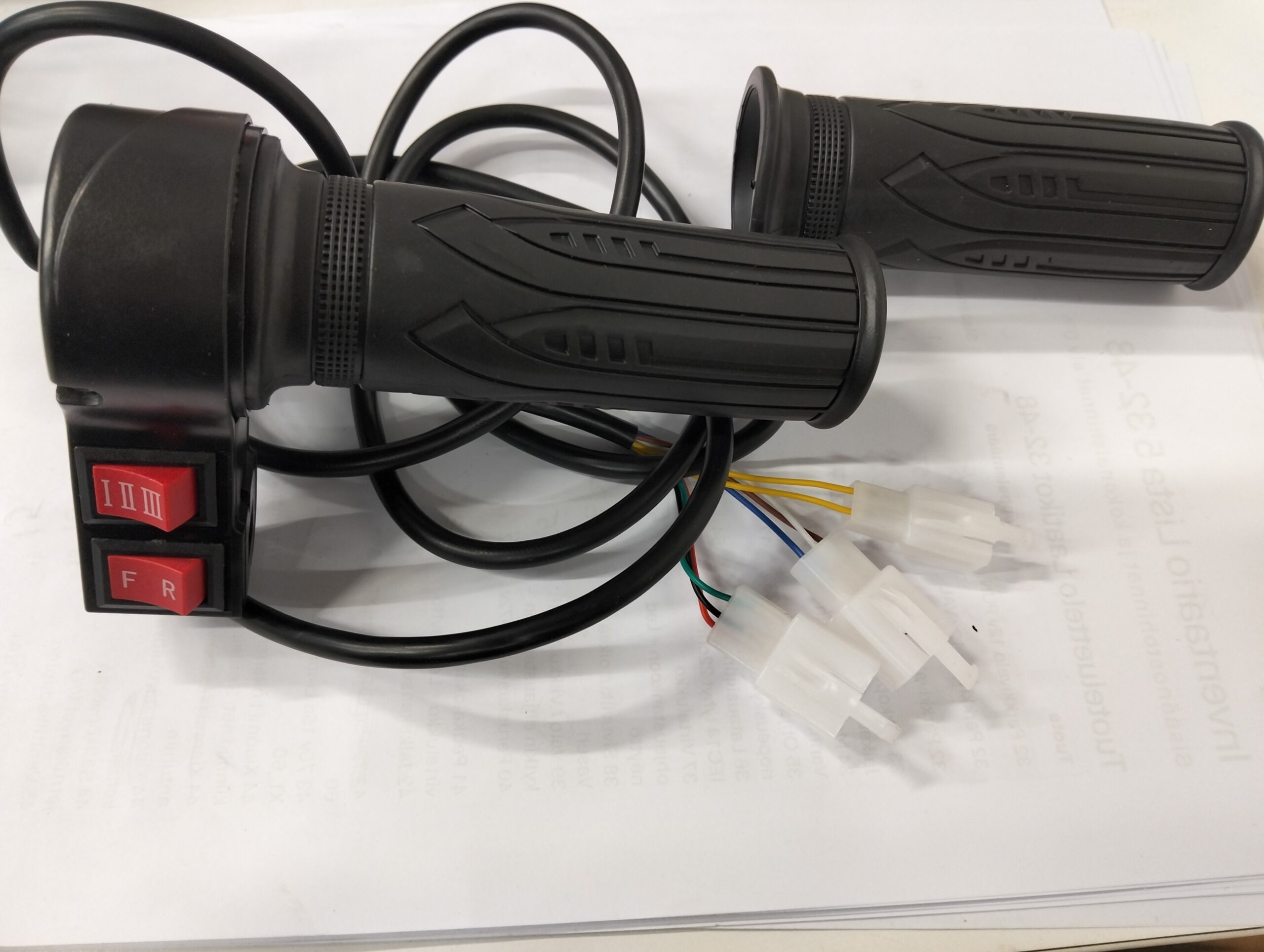 Soveltuu moneen käyttöön, myös korvaus kaasukahvaksi yleisimpiin sähköajoneuvoihin. – Huom. Liittimet voivat olla erilaiset ja eri järjestyksessä, mutta yleensä kaasukahvassa on standardivärit jotka ovat: Punainen, musta ja vihreä. Tarkista ennen asennusta että värit ovat oikein.